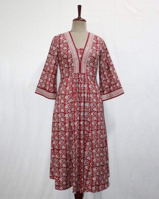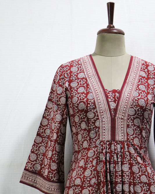 “Handcrafted Kalamkari A-Line Cotton Kurta – Flowy Fit & Traditional Print”