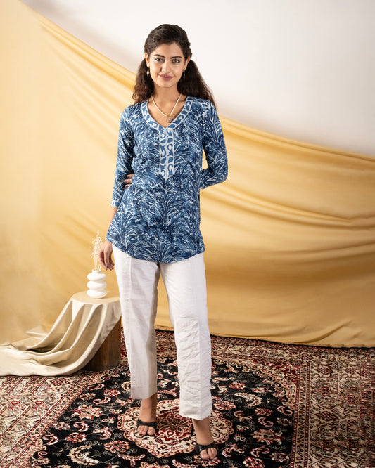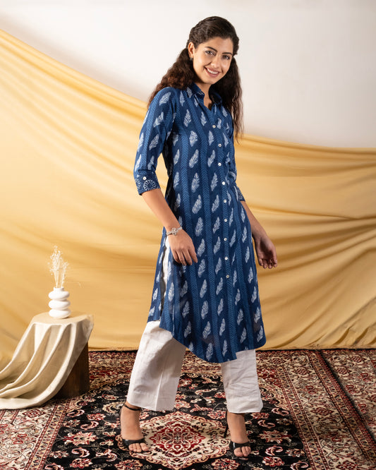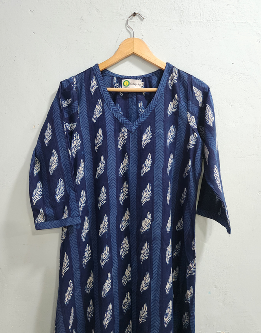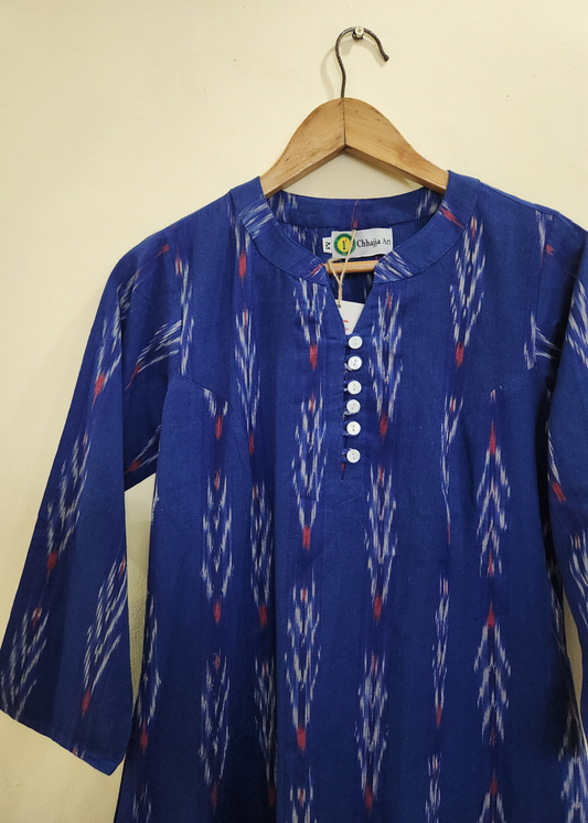 Blue Handloom Ikat Cotton Kurta for Women – Soft, Breathable & Everyday Wear