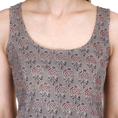 Sanganeri Handblock Printed Short Kurta with Halter Neck & Border Detailing