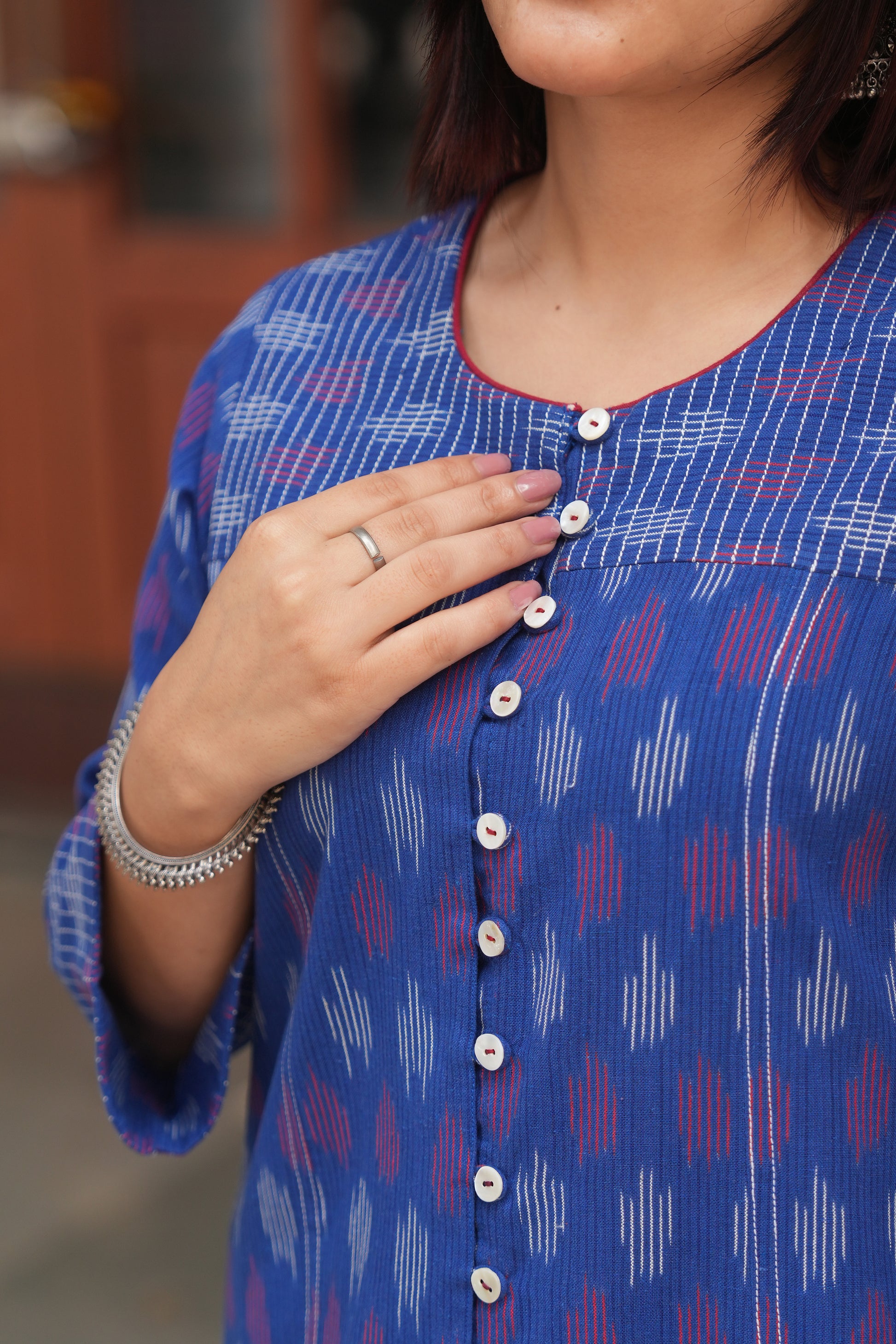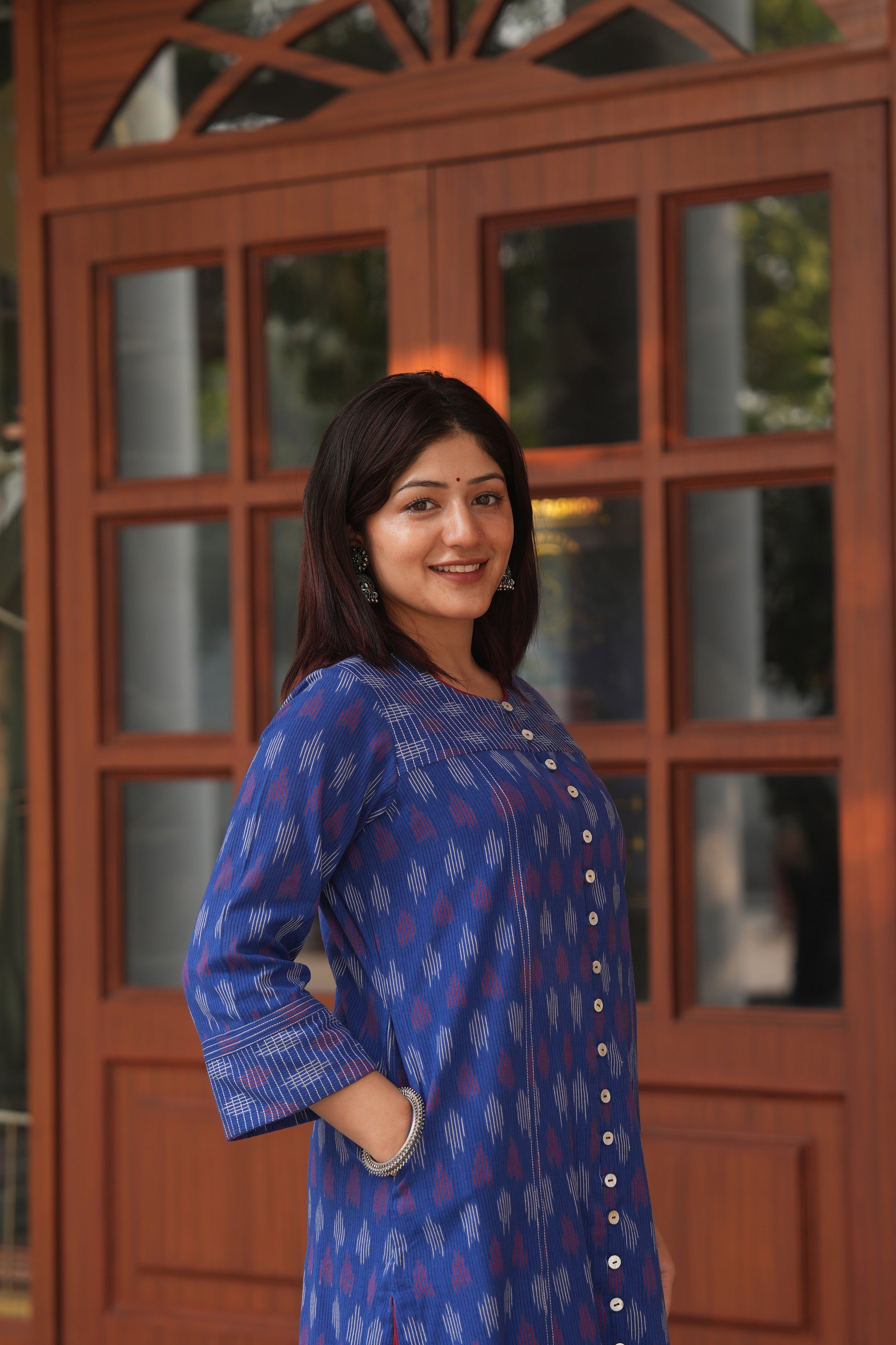 Blue Handloom Ikat Cotton Kurta for Women – Soft, Breathable & Everyday Wear