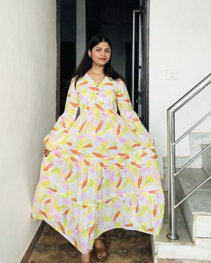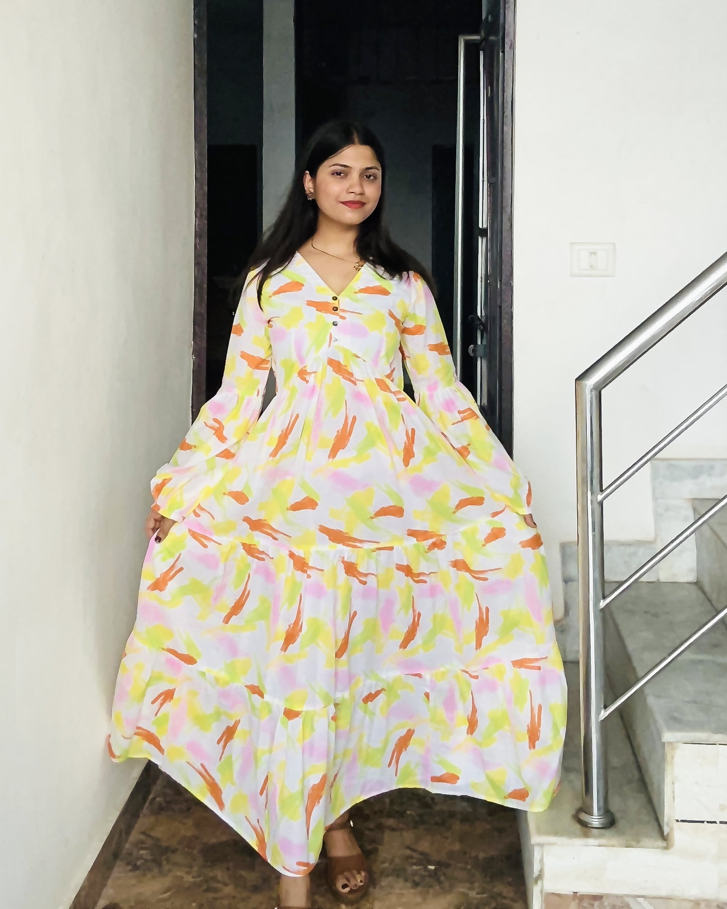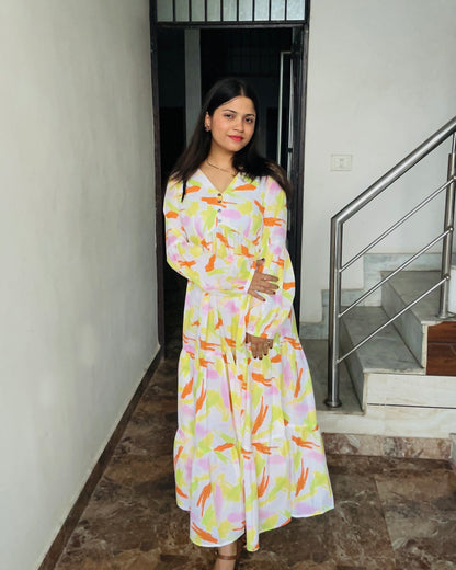 Flowy, graceful, and rooted in tradition — the Bloom Tear Dress is a tribute to timeless Crafted in breathable cotton and designed in a calf-length tear style, this full-sleeved dress drapes effortlessly and offers all-day comfort with artisanal charm.