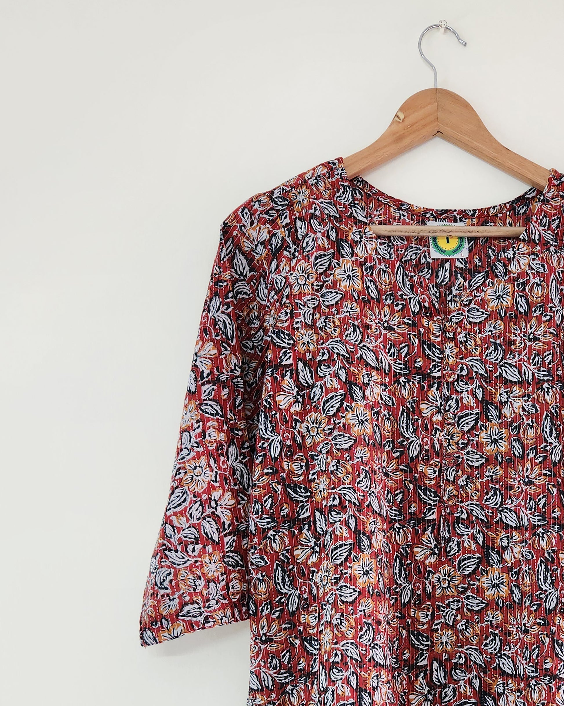 Sanganeri Handblock Printed Short Kurti – Halter Neck, 3/4th Sleeves