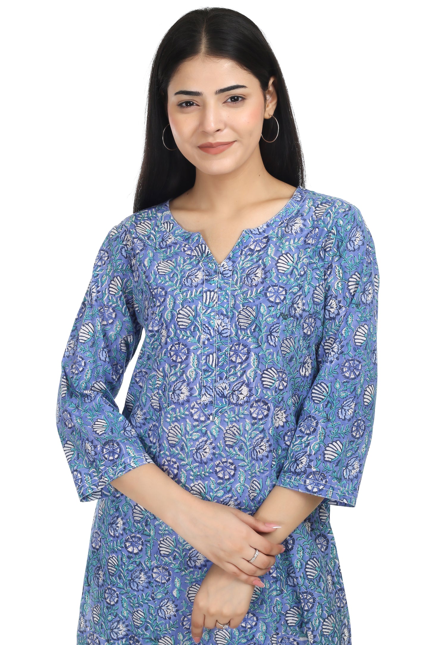 Sanganeri Handblock Printed Short Kurti – Halter Neck, 3/4th Sleeves