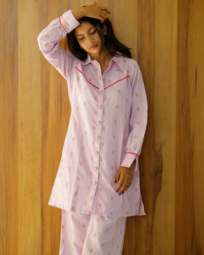 This mauve cotton co-ord set combines comfort and style in a stylish way. This set is made of soft cotton and has a matching top and bottom, making it suitable for any occasions as well as informal get-togethers...
