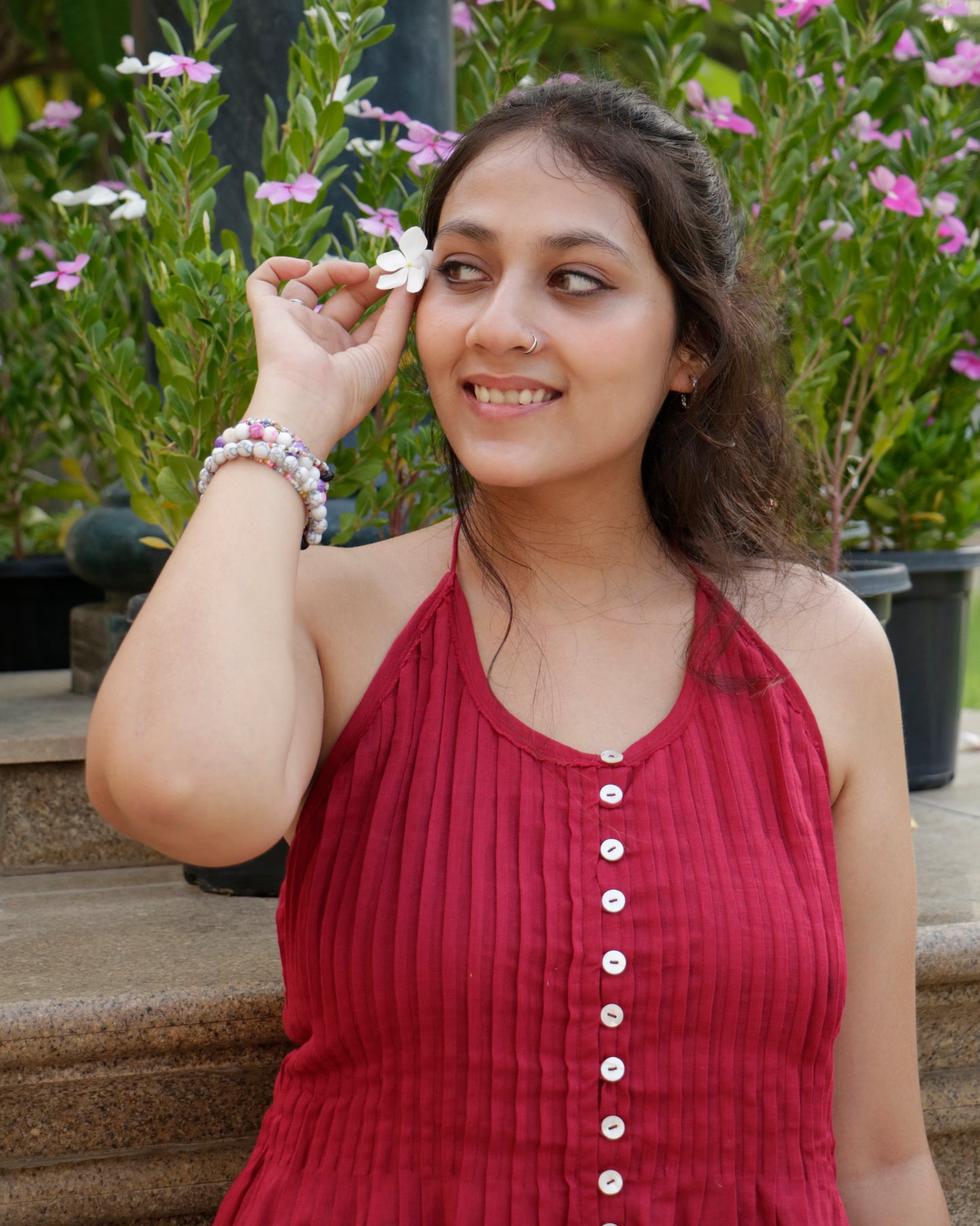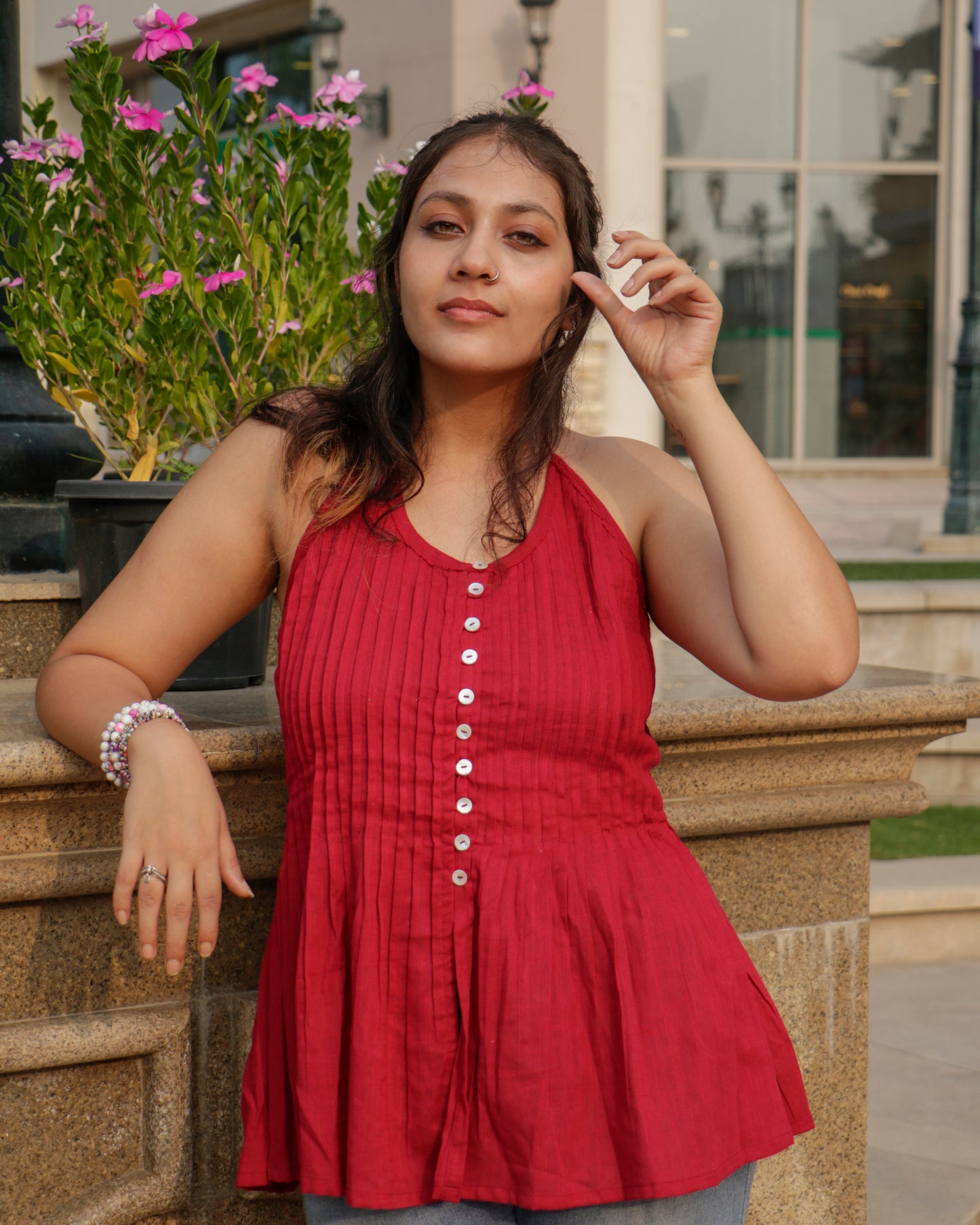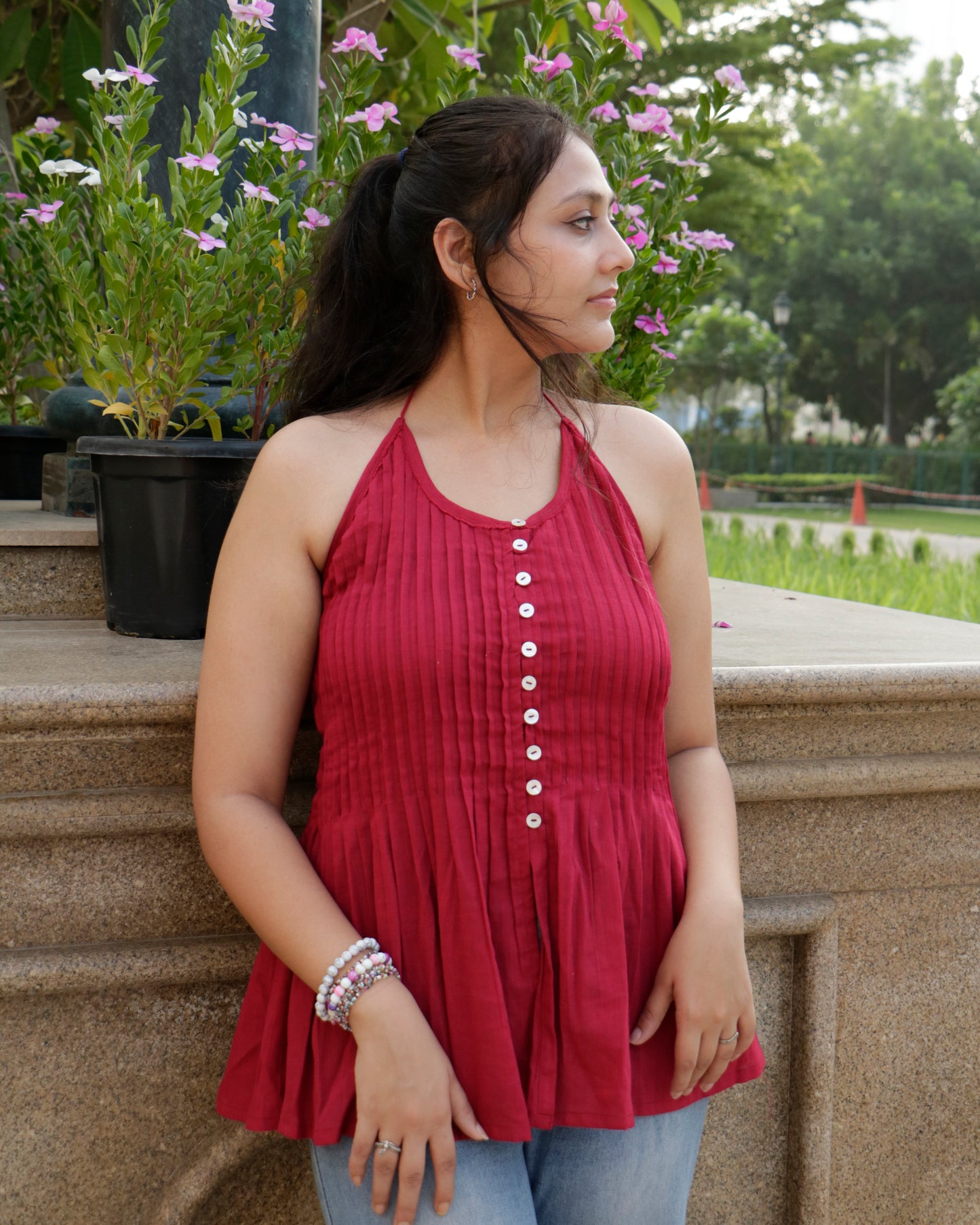Noodle Strap Halter Neck Khadi Cotton Crop Top is perfect for embracing the summer breeze.