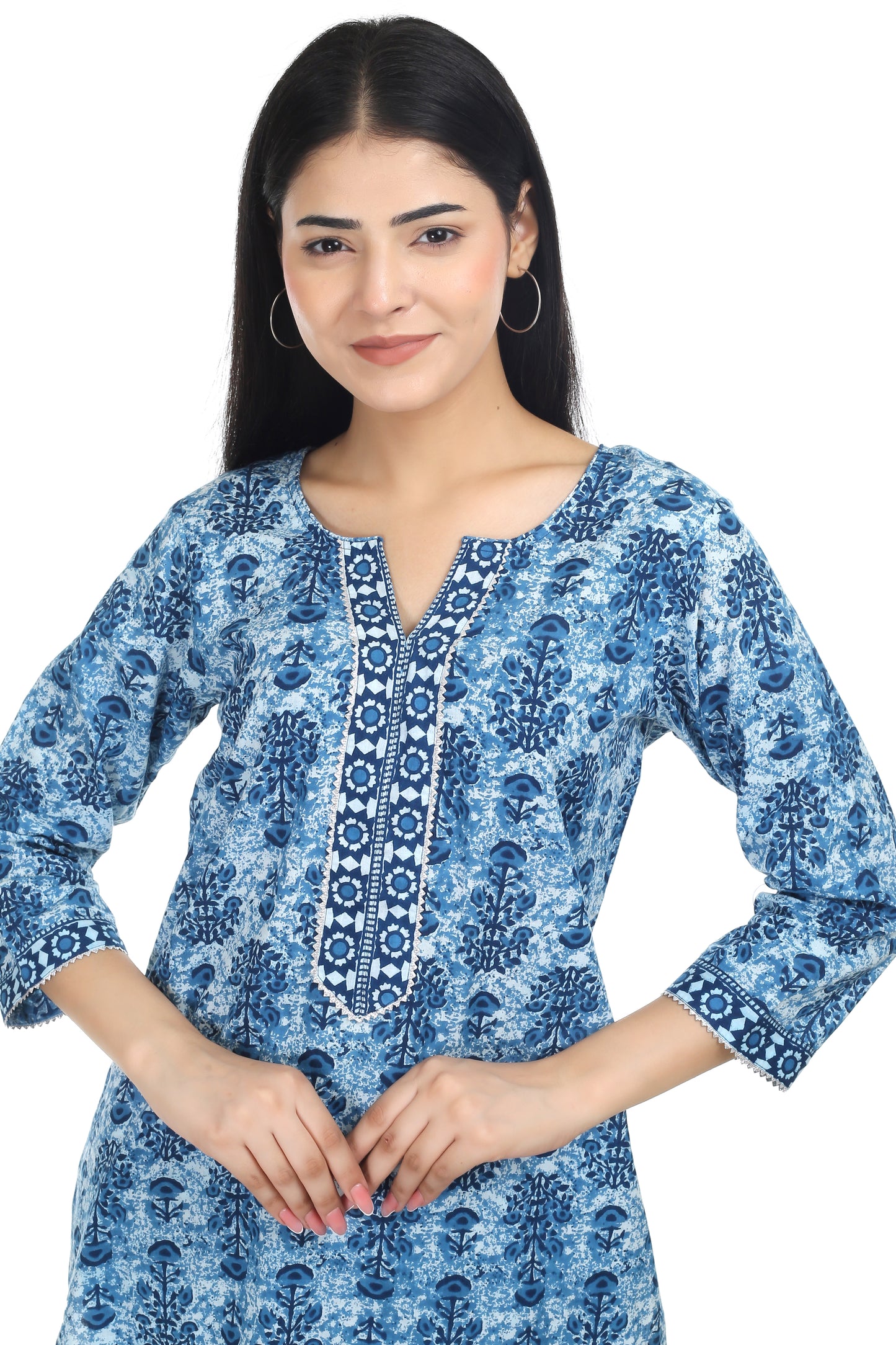 Sanganeri Handblock Printed Short Kurti – Halter Neck, 3/4th Sleeves