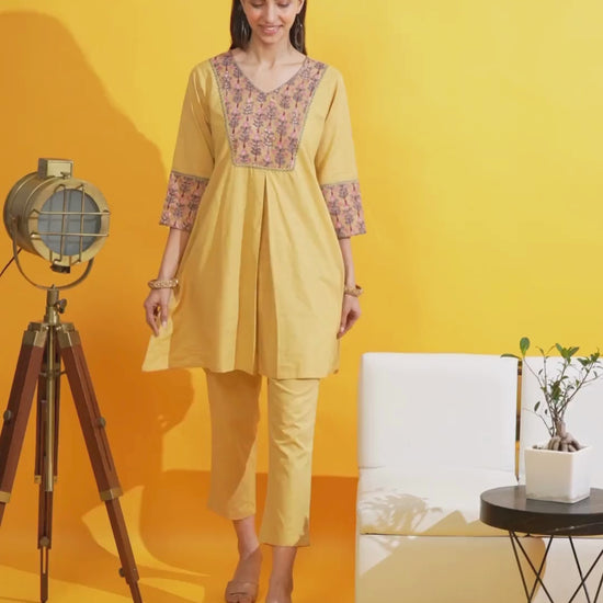 Presenting to you is the Lillen Co-Ord Set. Features patch work and hand detailing on neck part and sleeves. The upper part has double side pocket and front box pleat which gives you more comfort and great look.