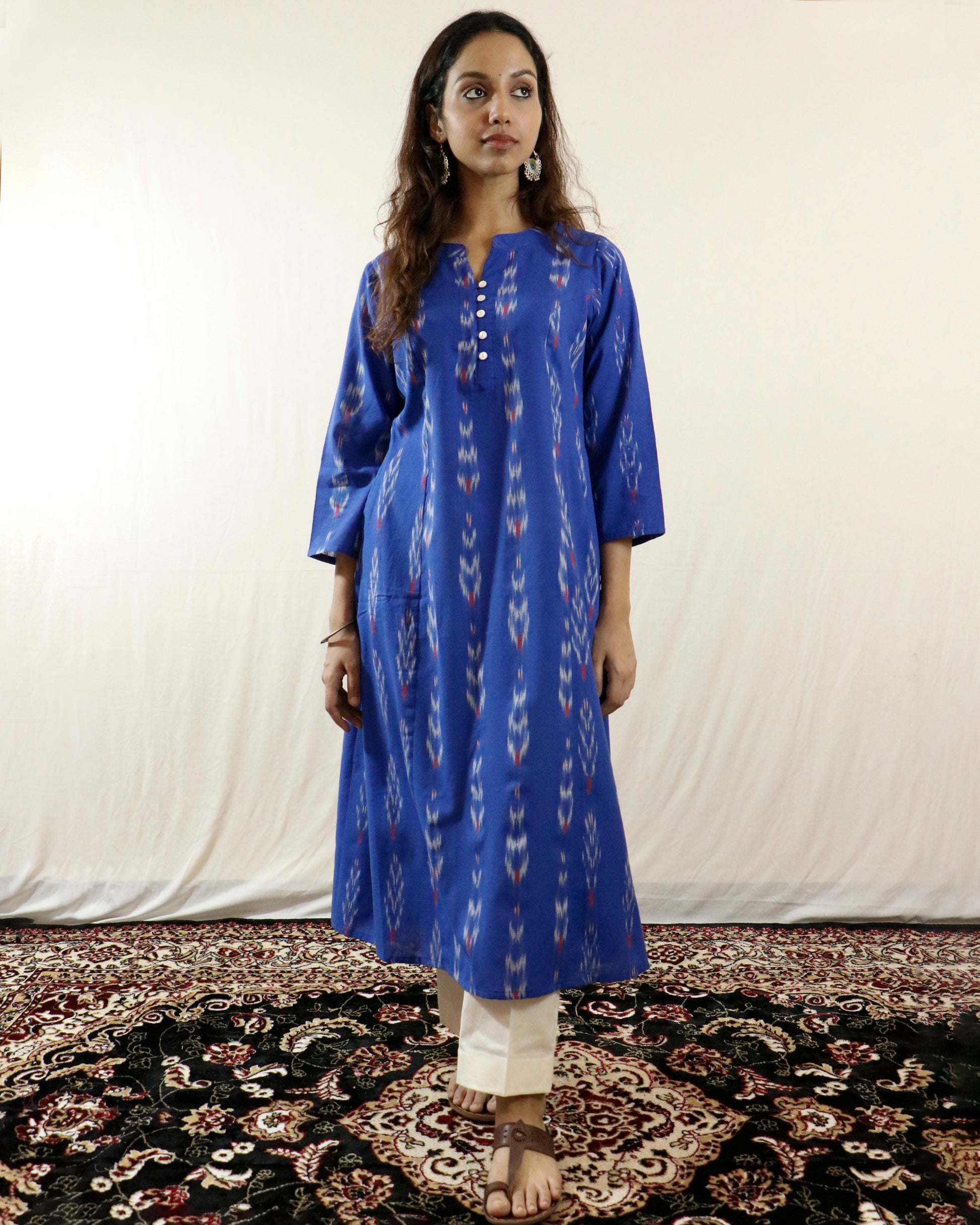 Neel Tara Handwoven Ikat A Line Kurta- both side pocket