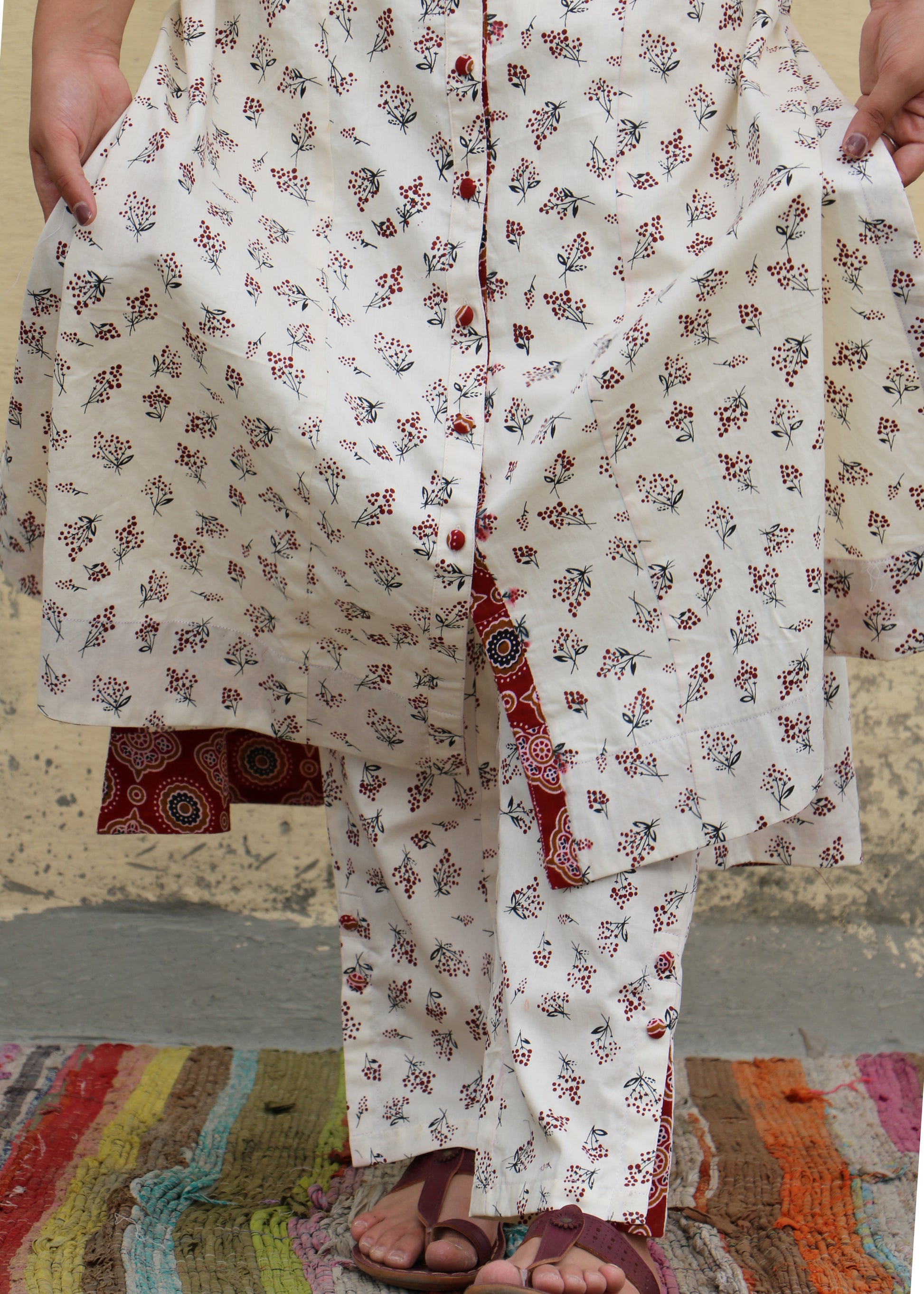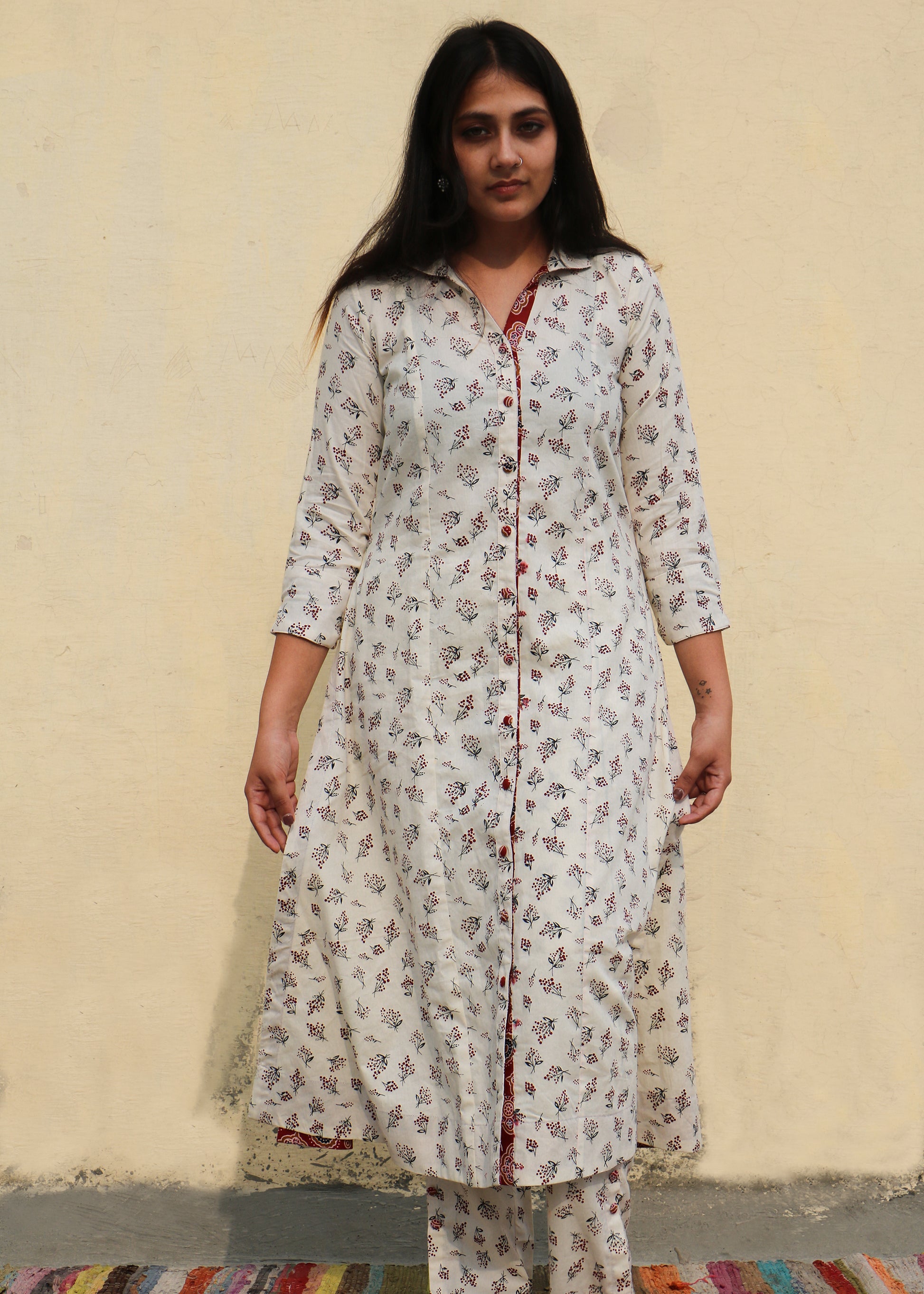 Bagh, Handprinted Indigo cotton Co-ord set, with front open shirt & straight fit pant