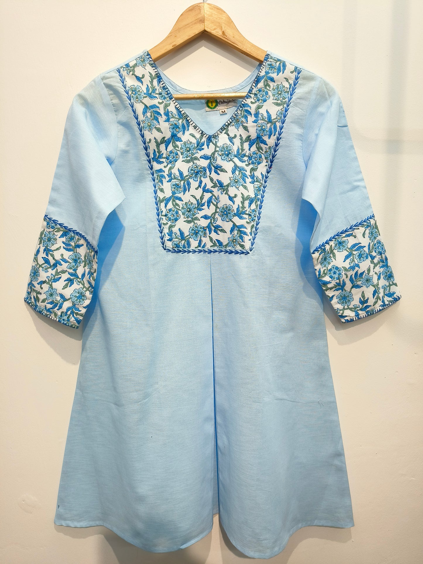 Sanganeri Handblock Printed Short Kurti – Halter Neck, 3/4th Sleeves