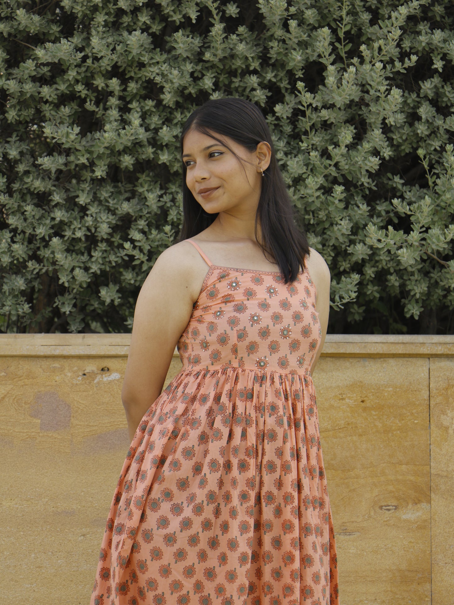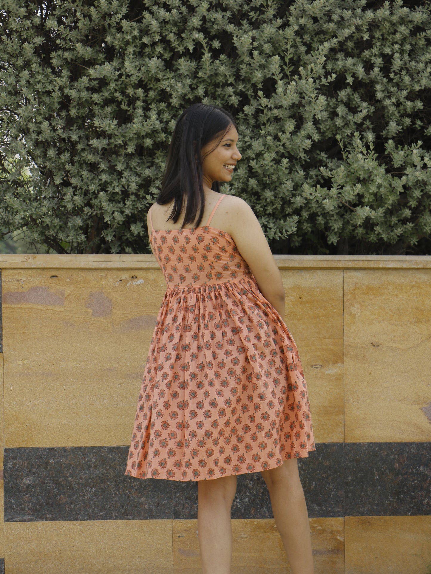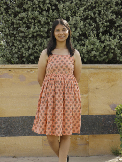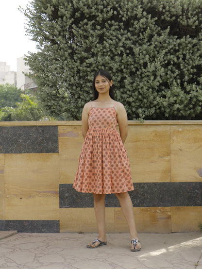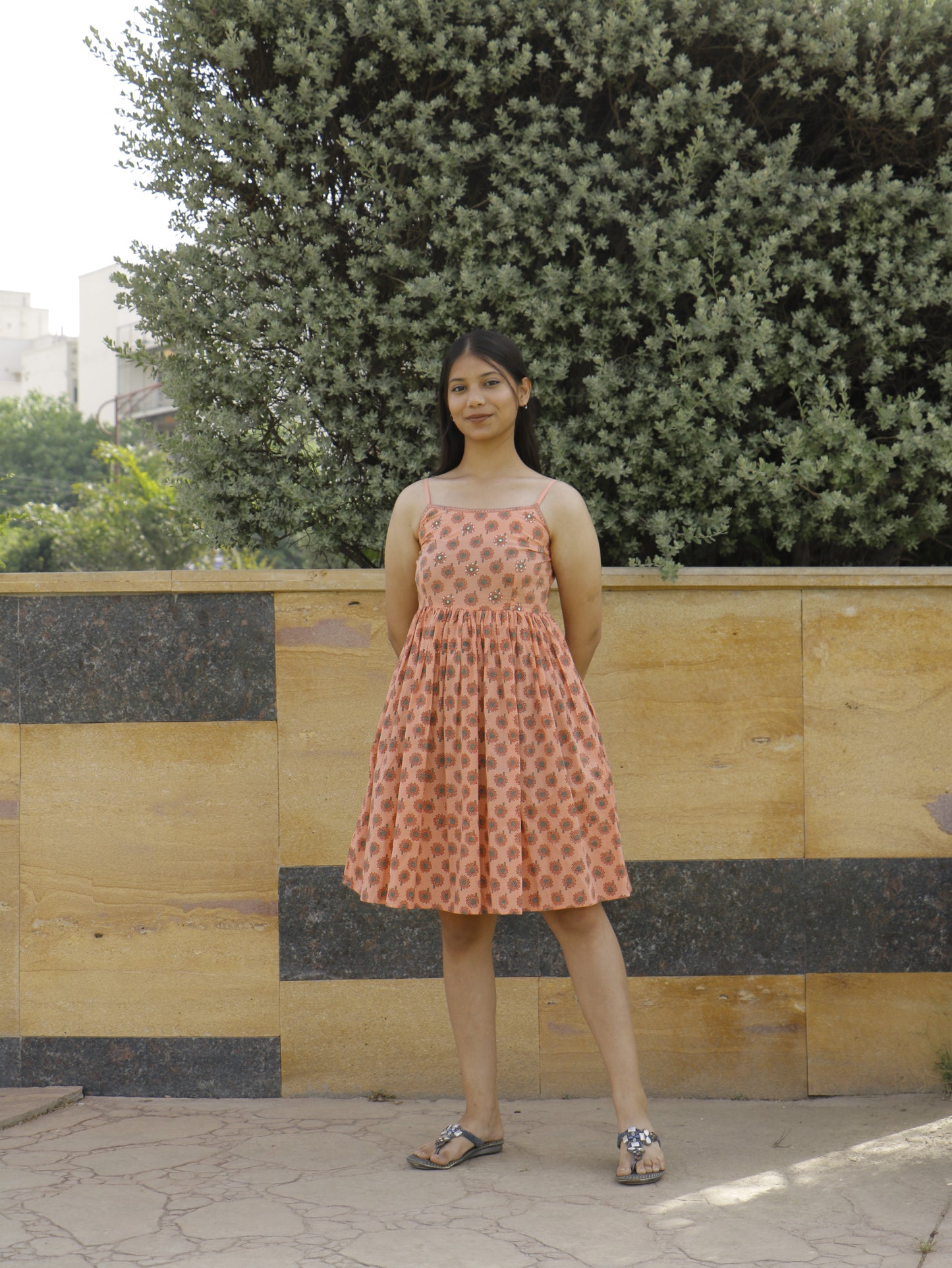 Sanganeri Handblock Printed Short Kurta with Halter Neck & Border Detailing