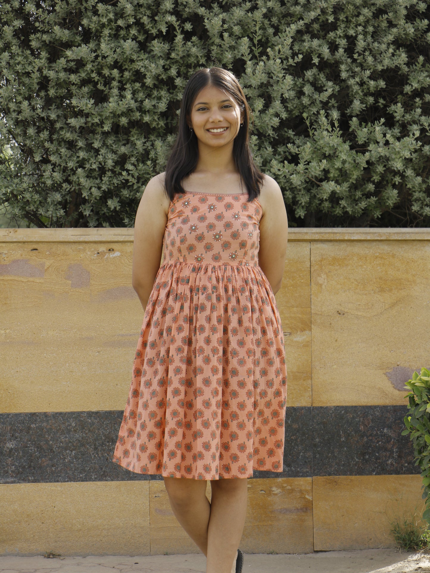 Present you calf-length mini dress! Crafted from soft cotton fabric, it features exquisite hand embroidery on the yoke, adding a touch of sophistication to your wardrobe. Elevate your style effortlessly.